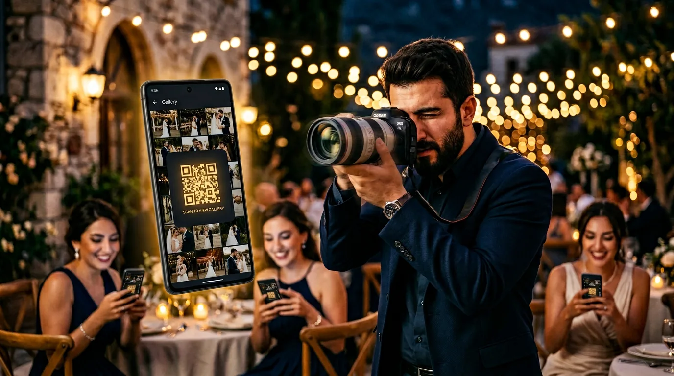 FramePay, telefonunu profesyonel bir foto-satış noktasına dönüştürür. Müşterilerin yerel bir QR ile galeriye girer, beğendiklerini seçer ve nakit, IBAN, kart veya FramePay ile öder. İnternet olsa da olmasa da çalışır.